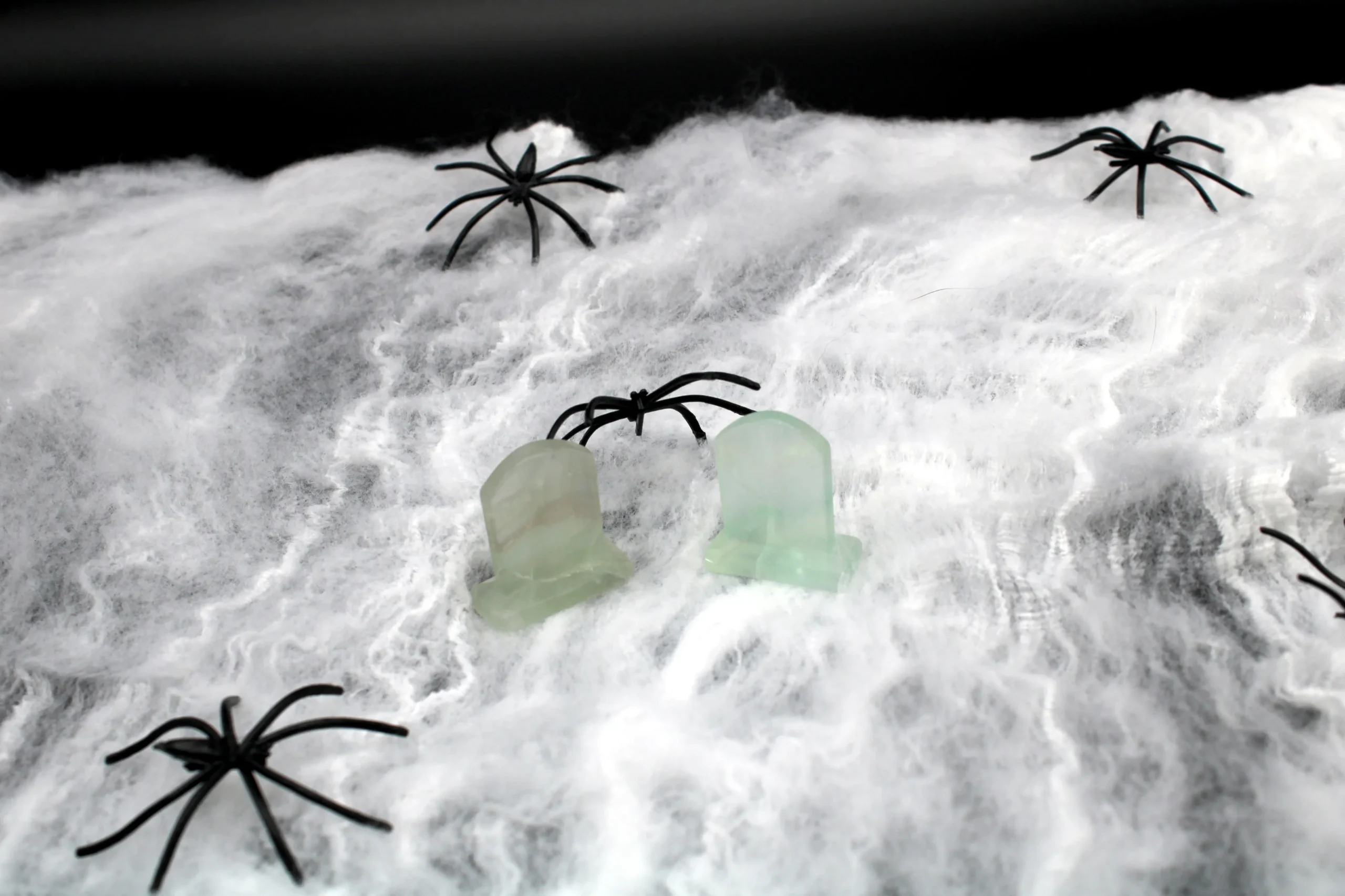 Den Lille Fluorit Gravsten er en ultra kompakt dekorations på ca. 3 cm i højden, formet som en miniature gravsten med afrundet top og plan base for stabil placering. Naturlige grønne nuancer skaber en elegant lille dekorativ krystal.