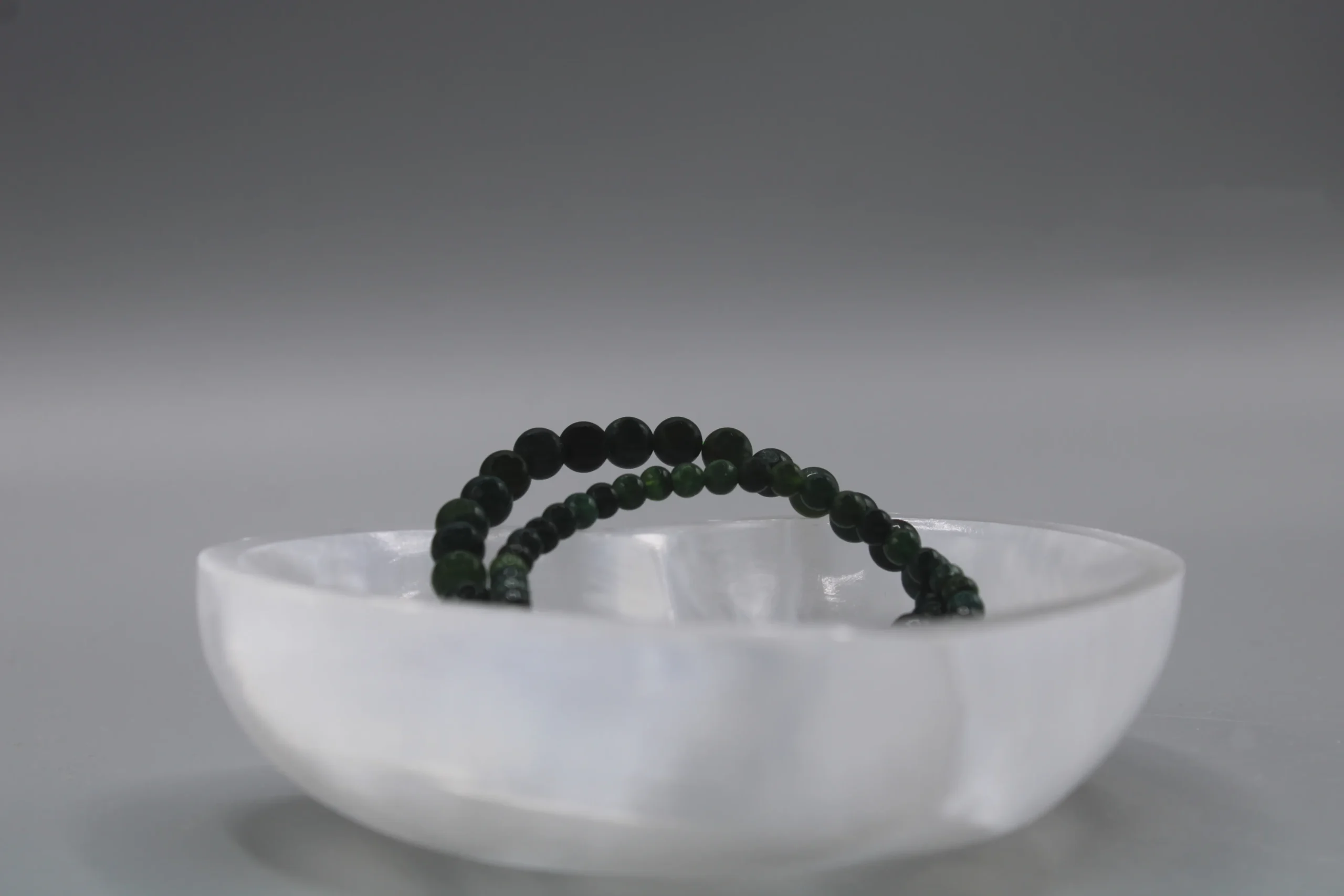 Det fleksible design sikrer en behagelig pasform, der passer til både daglig brug og særlige anledninger. Mos Agat armbåndet er mere end blot et smykke; det repræsenterer en forbindelse til jordens naturlige skønhed og en påmindelse om enkelhed og harmoni.