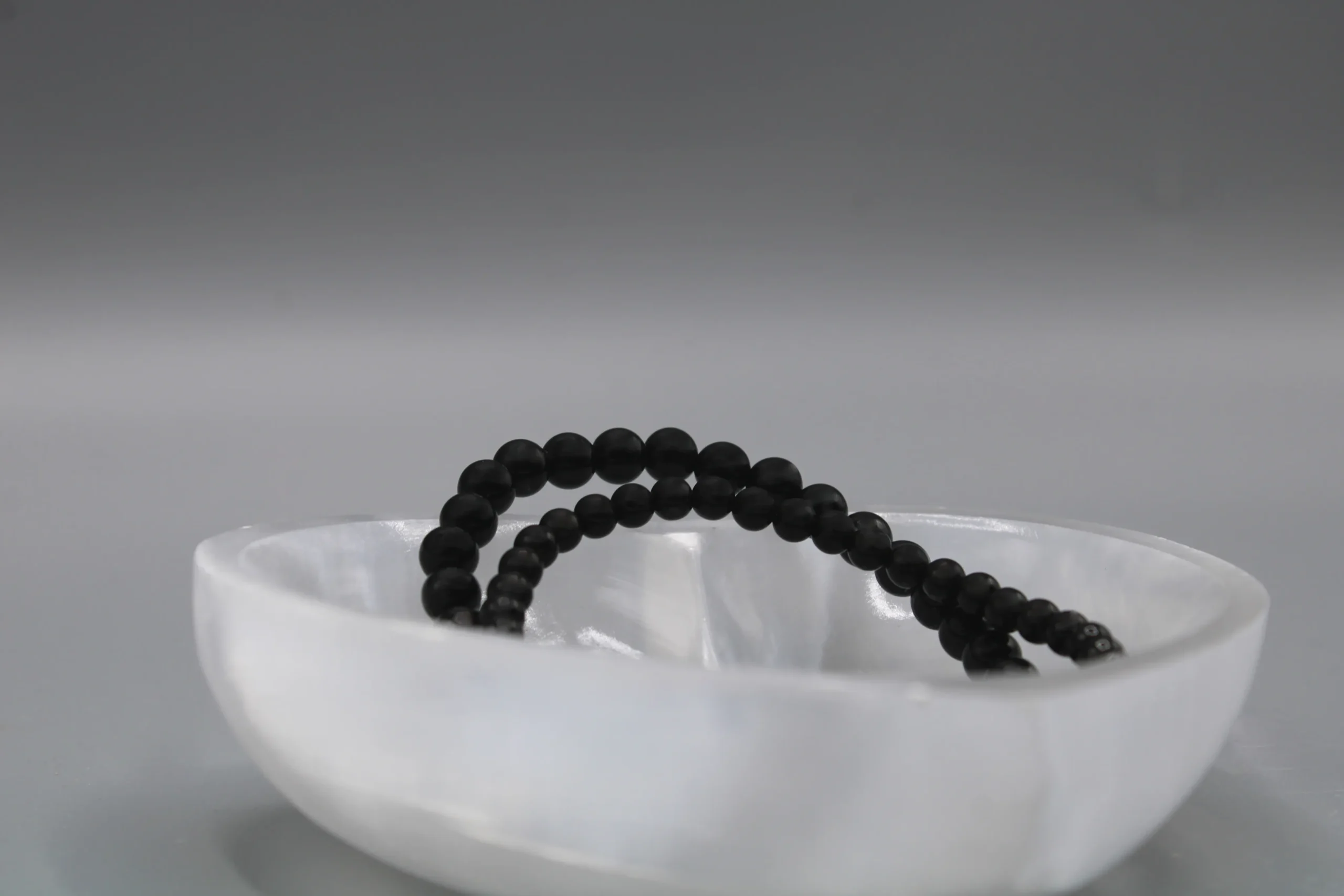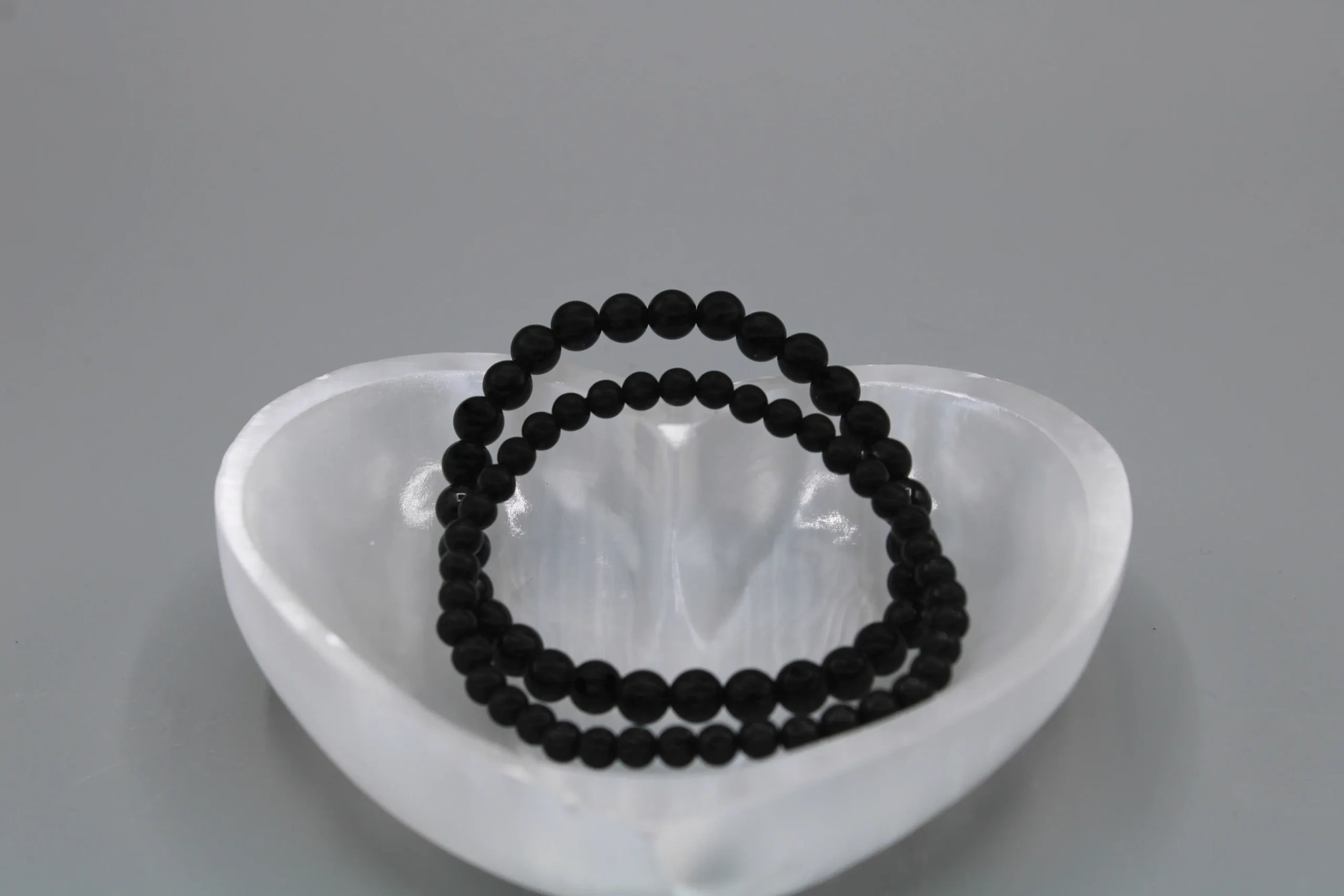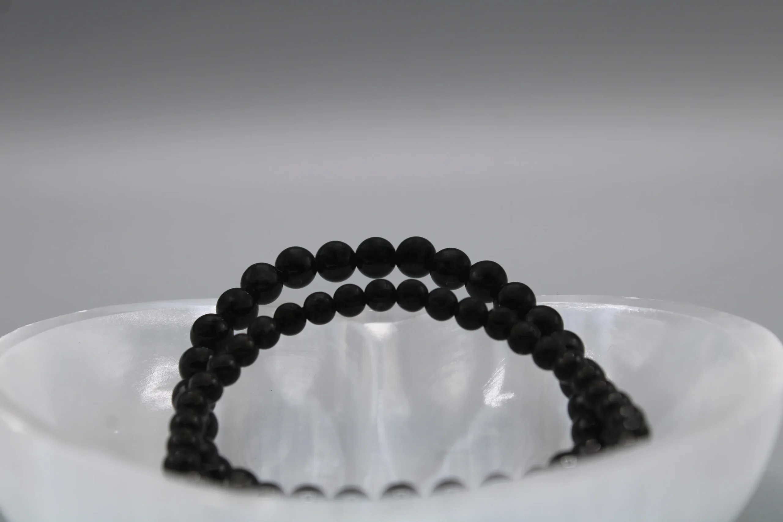 Obsidian armbånd er et stilrent stenarmbånd med dybsort, spejlblank glans, der tilfører dit look skarp elegance og tydelig kant. Perler af sort obsidian – naturligt vulkansk glas – er håndpoleret for at fremhæve den ensartede overflade og det diskrete lysspil. Hver perle er omhyggeligt udvalgt og trukket på en stærk, elastisk smykkesnor, som giver en behagelig og sikker pasform hele dagen. Det minimalistiske design gør armbåndet let at style alene som et rent statement eller i kombination med ur og andre armbånd for et personligt udtryk – perfekt til alle lejligheder.