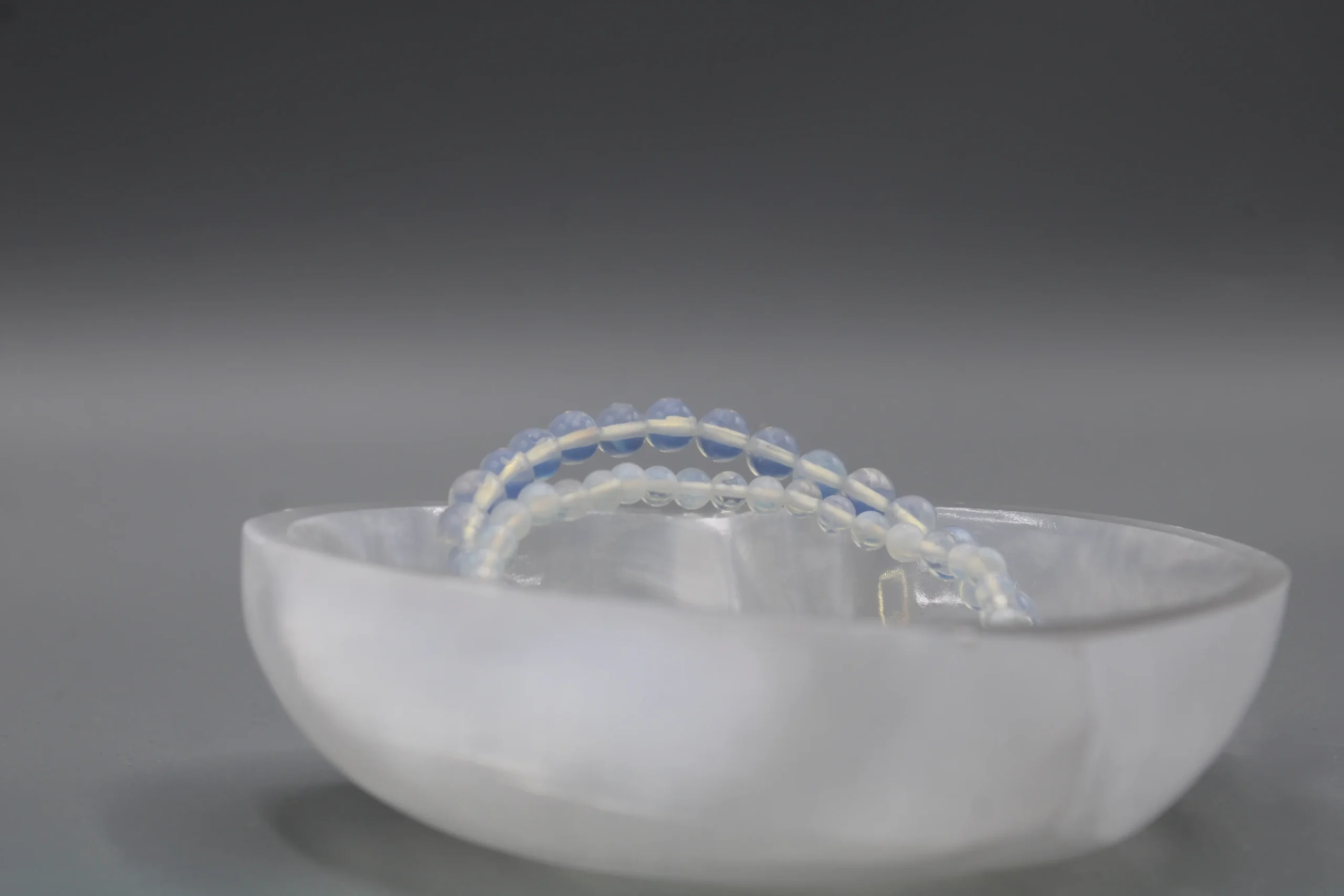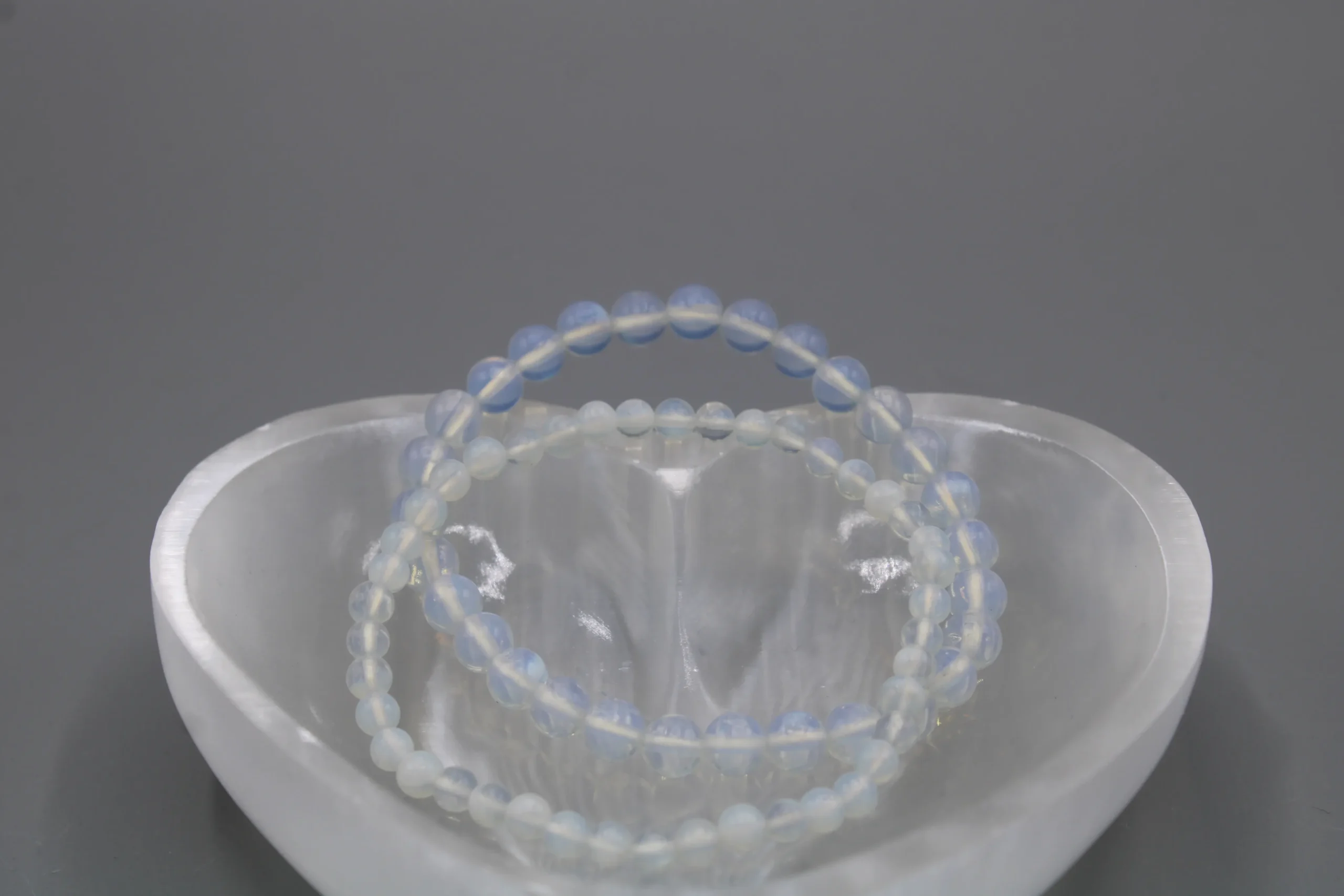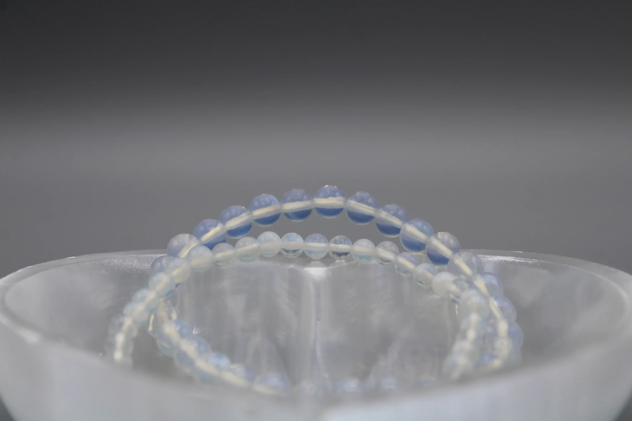 Opalit Armbånd er et lysende, opalescerende krystalsmykke, der kombinerer elegant design med blid, spirituel symbolik. Armbåndet er håndlavet med blankpolerede opalit-perler, hvis mælkehvide base skifter smukt mellem blå og gyldne nuancer alt efter lyset. De runde perler er trukket på en stærk og fleksibel elastik, som giver en behagelig pasform hele dagen. Det minimalistiske, unisex design gør dette opalit armbånd let at style alene for et rent udtryk eller sammen med ur og andre armbånd for et personligt lag-på-lag look – perfekt til både hverdag og fest.