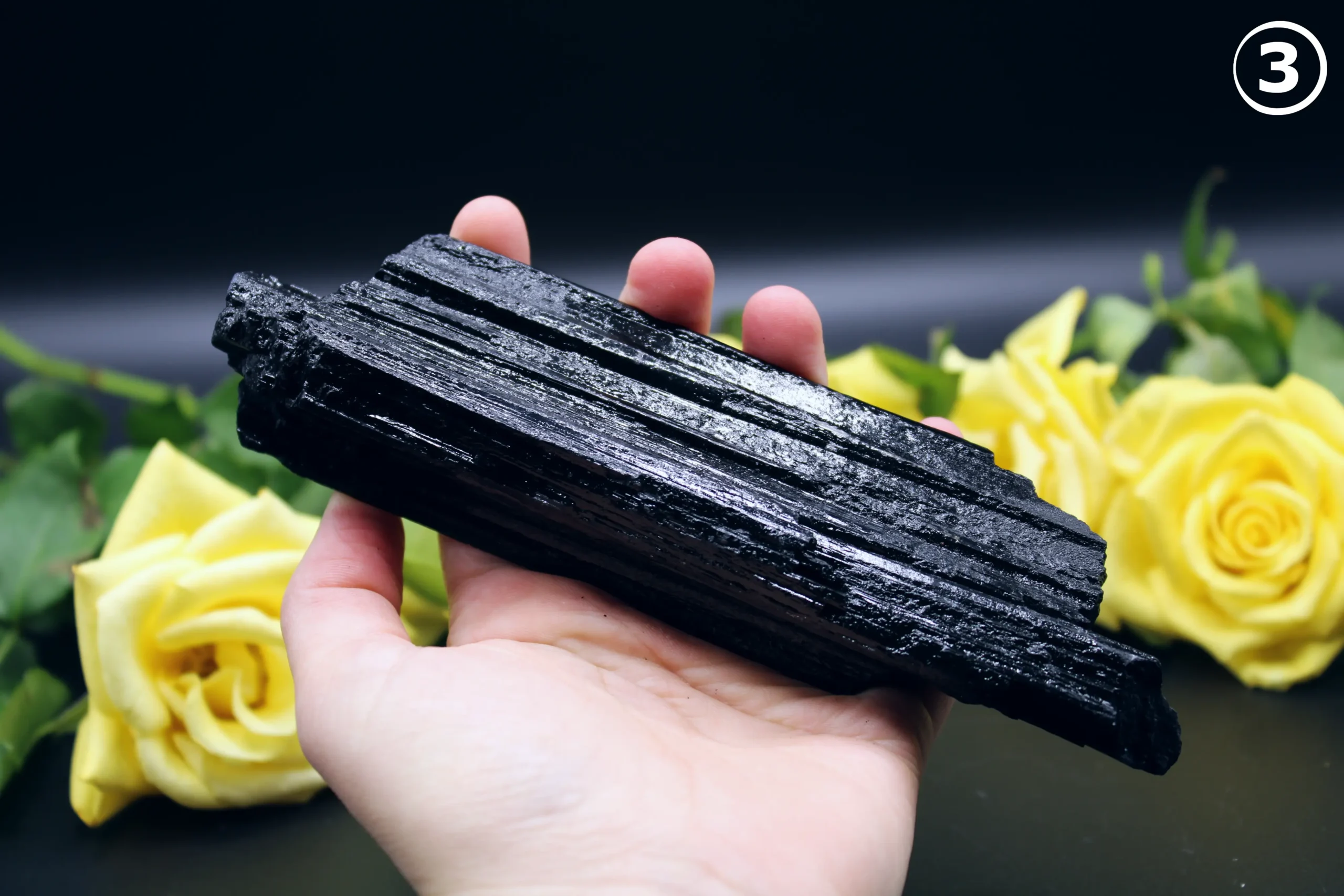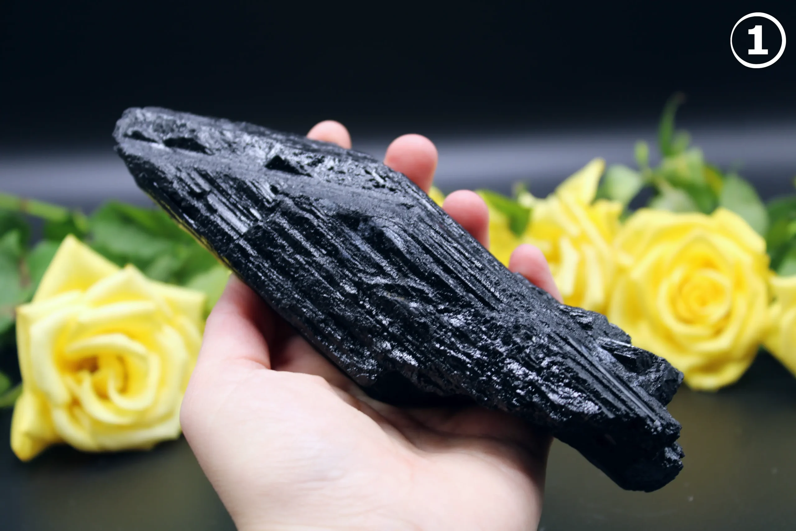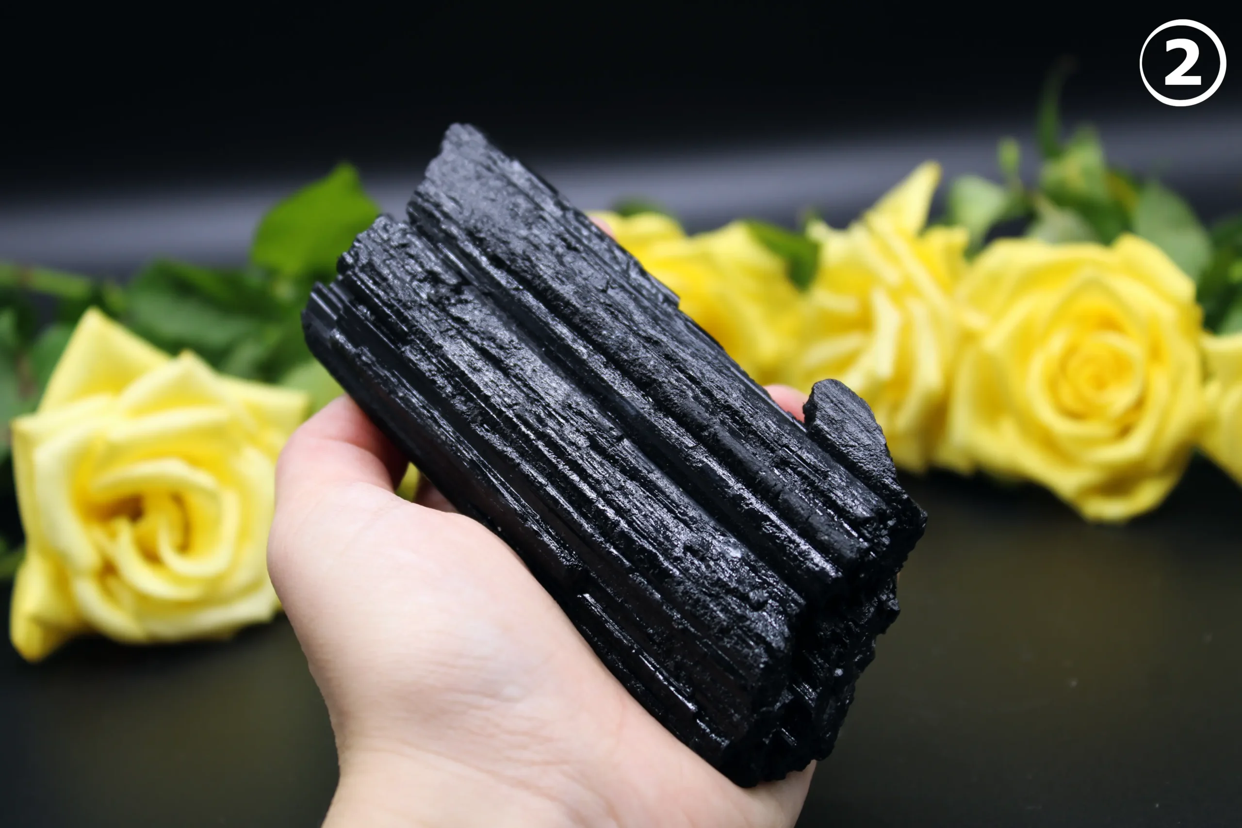 Vores rå sort turmalin leveres i flere forskellige størrelse med individuelle variationer, der sikrer at ingen to stykker er helt ens. Hver krystal rummer sin egen historie og karakter, lige fra næsten kulsort med spejlblanke flader til mere ru, næsten kul-agtige fragmenter. Turmalinens geometriske og til tider søjleformede vækst giver den et helt særligt, arkitektonisk udtryk, der passer både til det moderne, minimalistiske hjem og til den mere naturinspirerede indretning