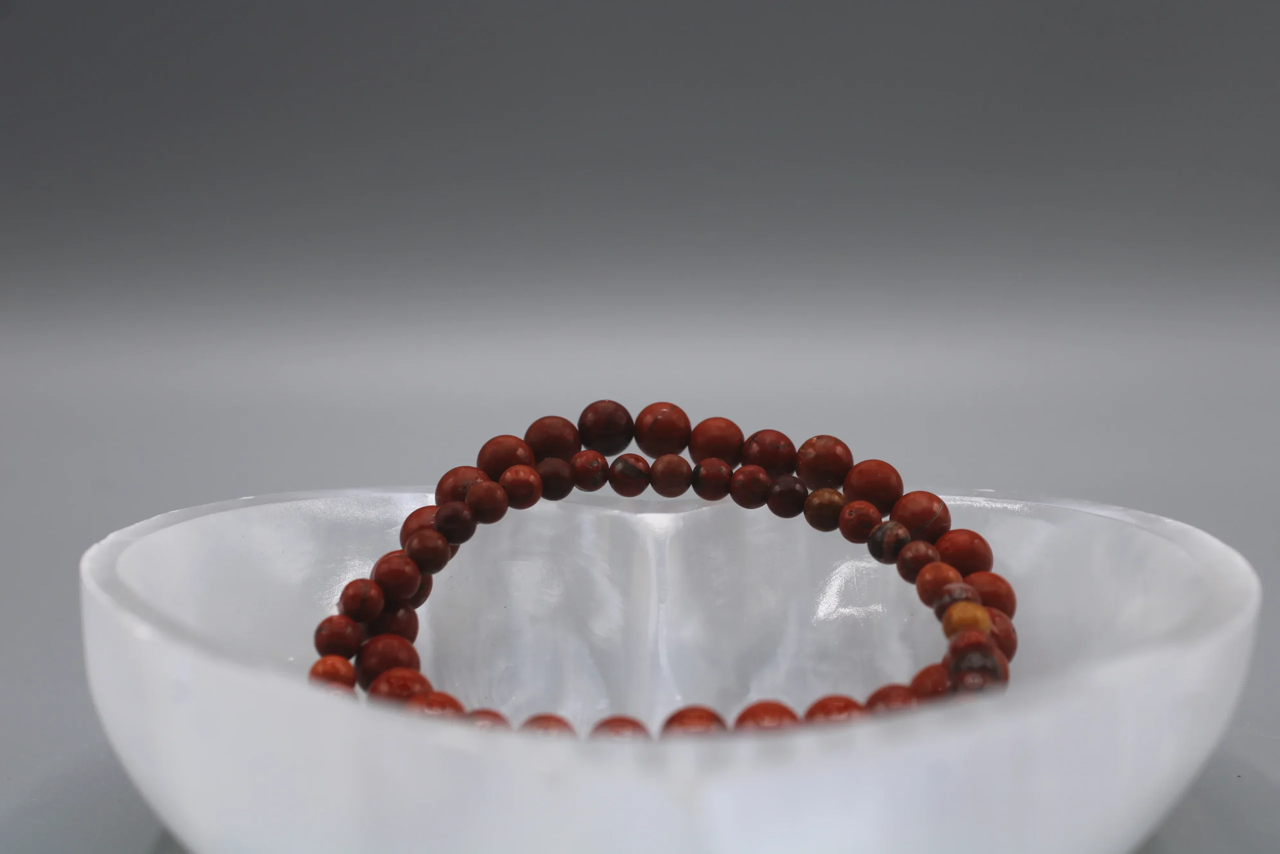 Hvert armbånd er omhyggeligt lavet med håndplukkede jaspis perler, der sikrer et unikt og personligt udseende. Den komfortable pasform gør det velegnet til daglig brug, samtidig med at det kan bæres ved særlige lejligheder for at tilføje et touch af klasse.